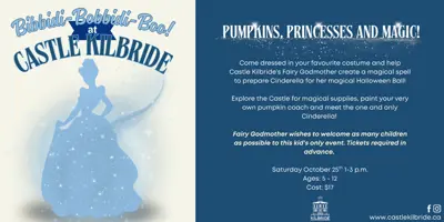 Come dressed in your favourite costume and help Castle Kilbride’s Fairy Godmother create a magical spell to prepare Cinderella for her magical Halloween Ball!